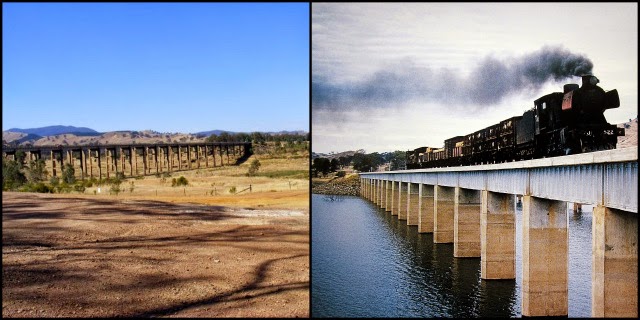 Lake Eildon in Victoria starkly demonstrates the effects of drought...and the evolution of rail transport.